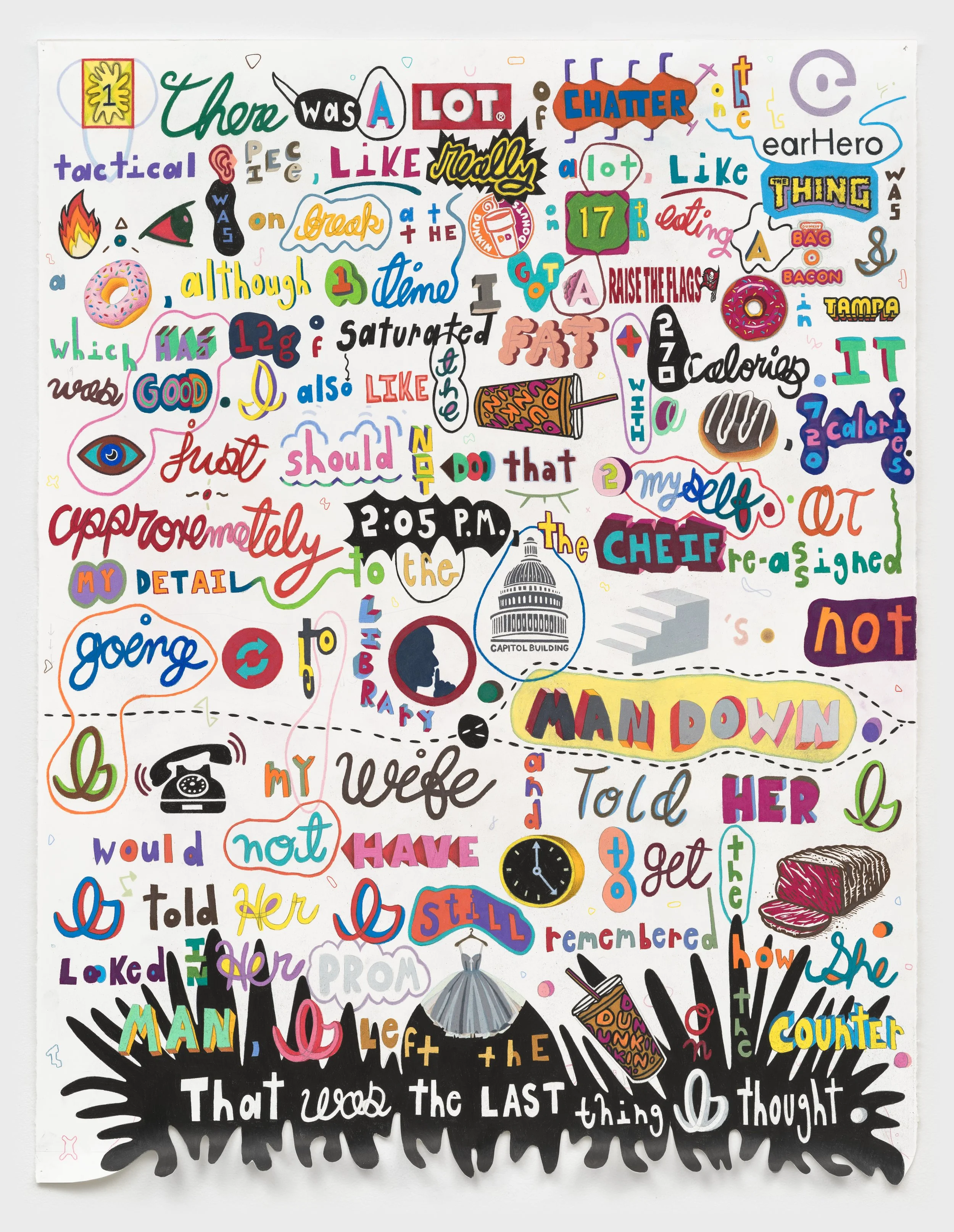 54 × 43 inches, colored pencil and graphite on shaped paper